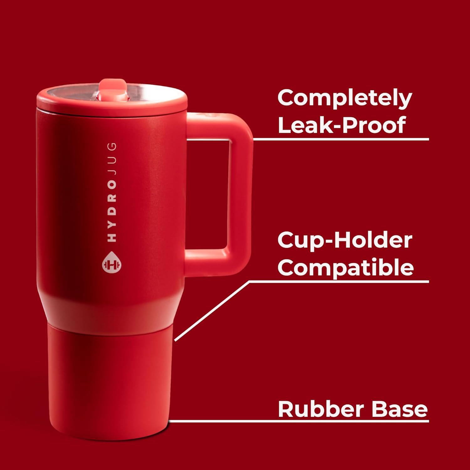 HydroJug Sport – Stainless Steel Tumbler with Straw, Vacuum Insulated, 40oz Leakproof Water Bottle, Ergonomic Design, Reusable, Dishwasher Safe, Rubber Base, Durable for Gym or Outdoors, Alumni Red(Alumni Red)