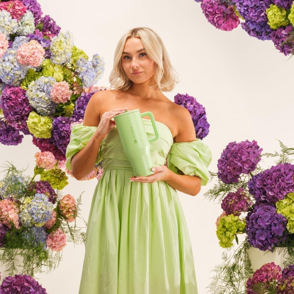 HydroJug Kids – 20 oz Insulated Kids Water Bottle with Flip Straw & Handle | Leak-Proof & Durable | Perfect for School, Sports, Lunch, Travel & Camp, Pink Sand(Sage)