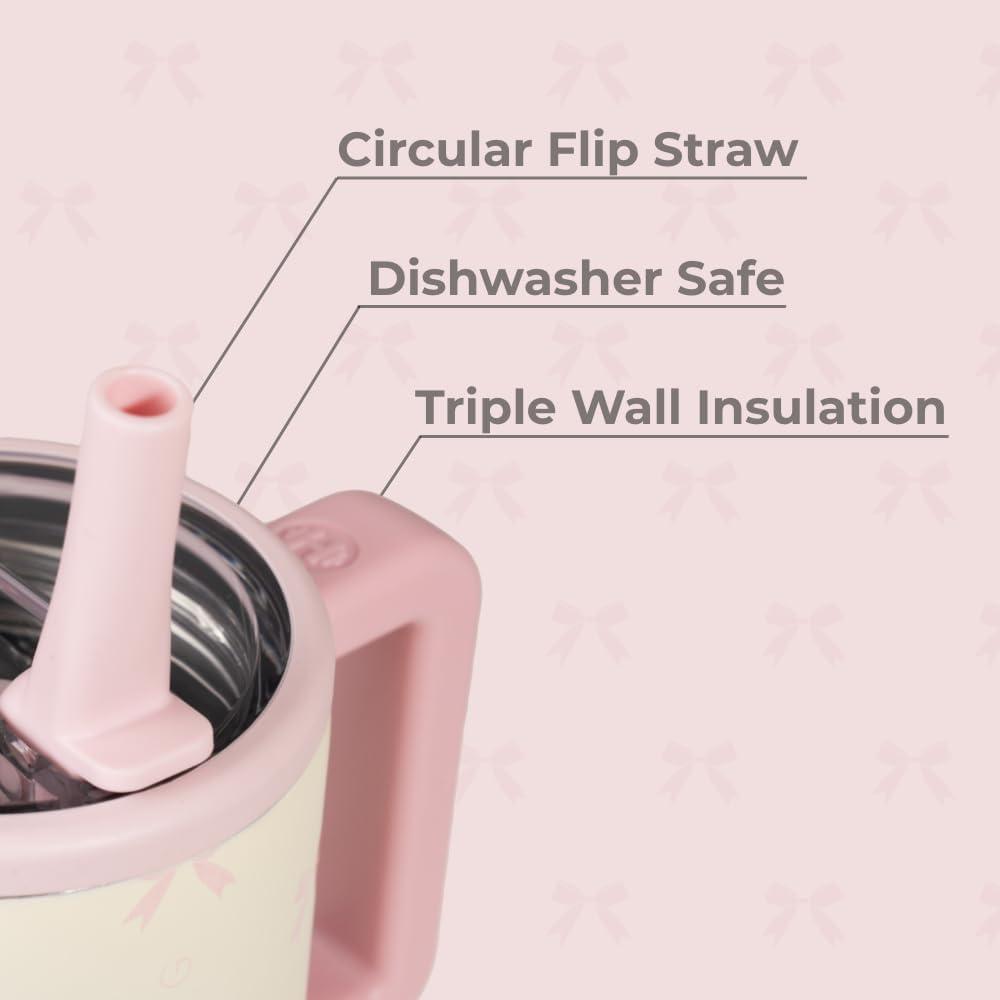 HydroJug Kids – 20 oz Insulated Kids Water Bottle with Flip Straw & Handle | Leak-Proof & Durable | Perfect for School, Sports, Lunch, Travel & Camp, Pink Sand(Bows)