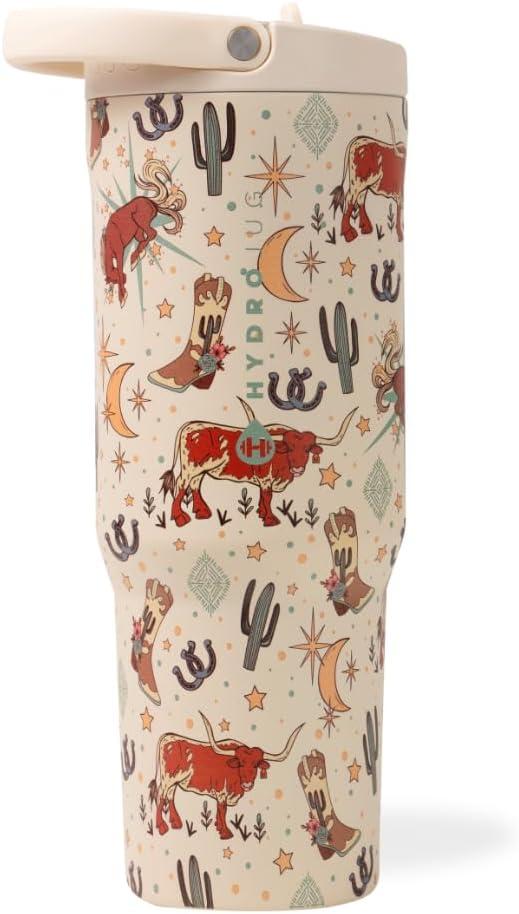 HydroJug Sport – Stainless Steel Tumbler with Straw, Vacuum Insulated, 32oz Leakproof Water Bottle, Ergonomic Design, Reusable, Dishwasher Safe, Rubber Base, Durable for Gym or Outdoors, Alumni Red(Rodeo)