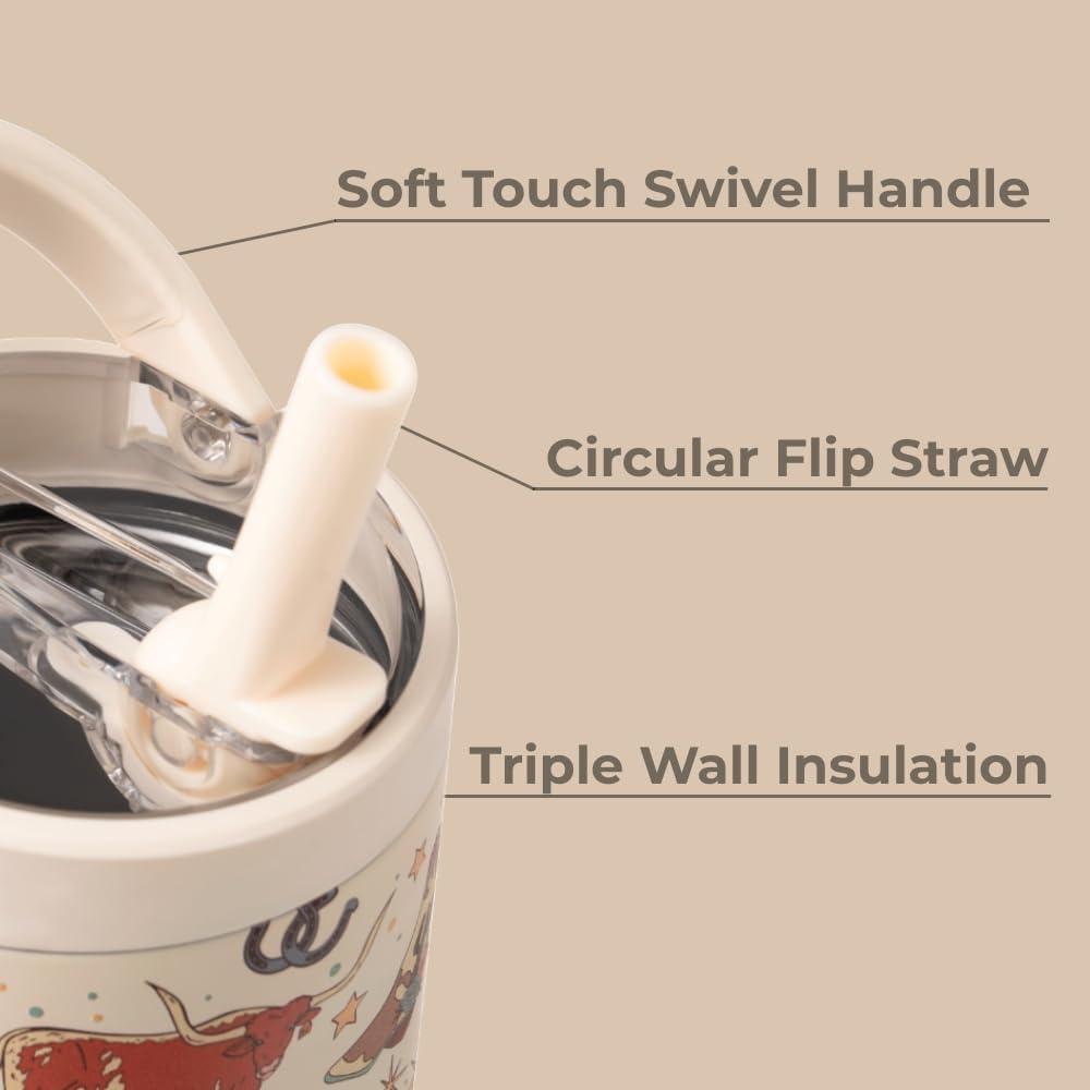 HydroJug Kids – 20 oz Insulated Kids Water Bottle with Flip Straw & Handle | Leak-Proof & Durable | Perfect for School, Sports, Lunch, Travel & Camp, Pink Sand(Cowgirl)