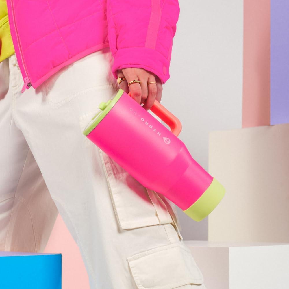 HydroJug Sport – Stainless Steel Tumbler with Straw, Vacuum Insulated, 32oz Leakproof Water Bottle, Ergonomic Design, Reusable, Dishwasher Safe, Rubber Base, Durable for Gym or Outdoors, Alumni Red(Pink Sugar)