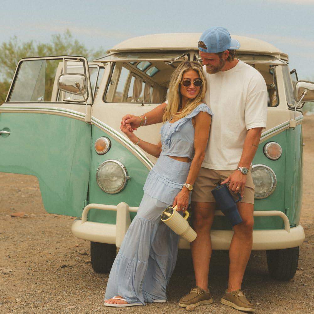 HydroJug Traveler – 40 oz Water Bottle with Handle & Flip Straw – Fits in Cup Holder, Leak Resistant Tumbler-Reusable Insulated Stainless Steel & Rubber Base – Gifts for Women & Men, Alumni Red(Pink Sugar)