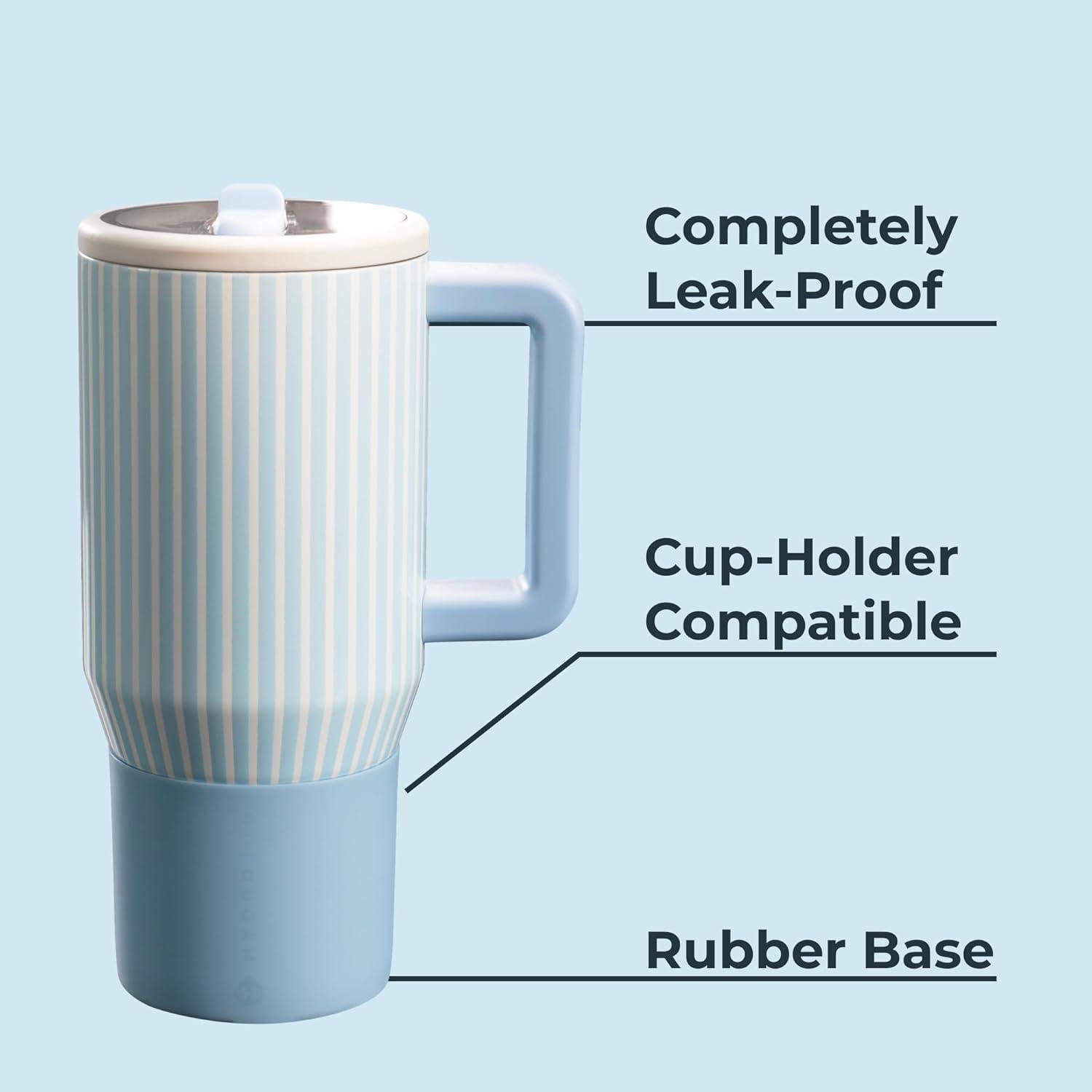 HydroJug Traveler – 40 oz Water Bottle with Handle & Flip Straw – Fits in Cup Holder, Leak Resistant Tumbler-Reusable Insulated Stainless Steel & Rubber Base – Gifts for Women & Men, Alumni Red(Orchid)