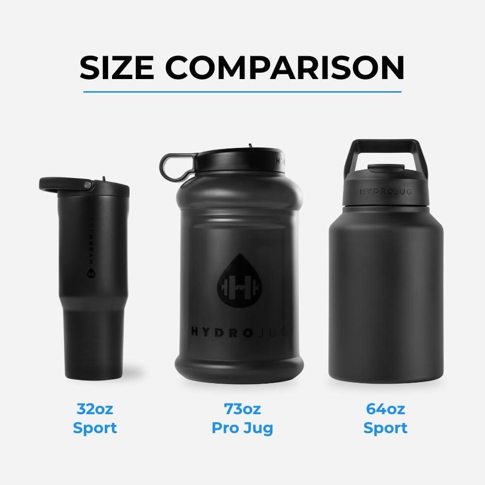 HydroJug Sport – Stainless Steel Tumbler with Straw, Vacuum Insulated, 64oz Leakproof Water Bottle, Ergonomic Design, Reusable, Dishwasher Safe, Rubber Base, Durable for Gym or Outdoors, Light Blue(Black)