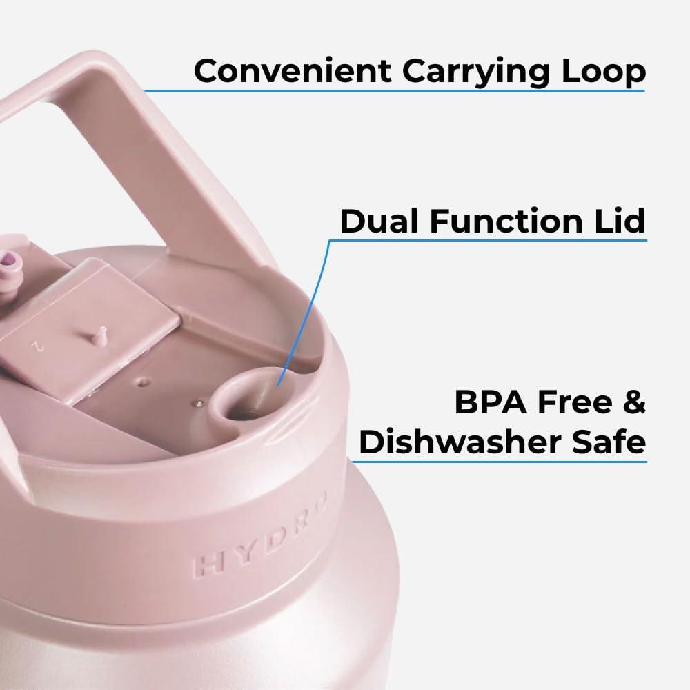 HydroJug Sport – Stainless Steel Tumbler with Straw, Vacuum Insulated, 64oz Leakproof Water Bottle, Ergonomic Design, Reusable, Dishwasher Safe, Rubber Base, Durable for Gym or Outdoors, Pink Sand