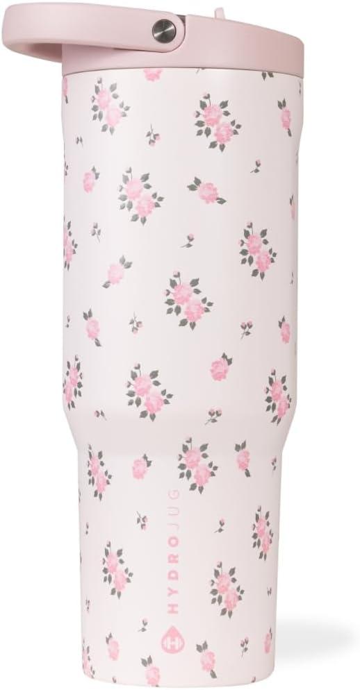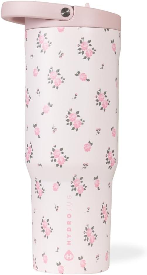 HydroJug Sport – Stainless Steel Tumbler with Straw, Vacuum Insulated, 32oz Leakproof Water Bottle, Ergonomic Design, Reusable, Dishwasher Safe, Rubber Base, Durable for Gym or Outdoors, Alumni Red(Wildrose)