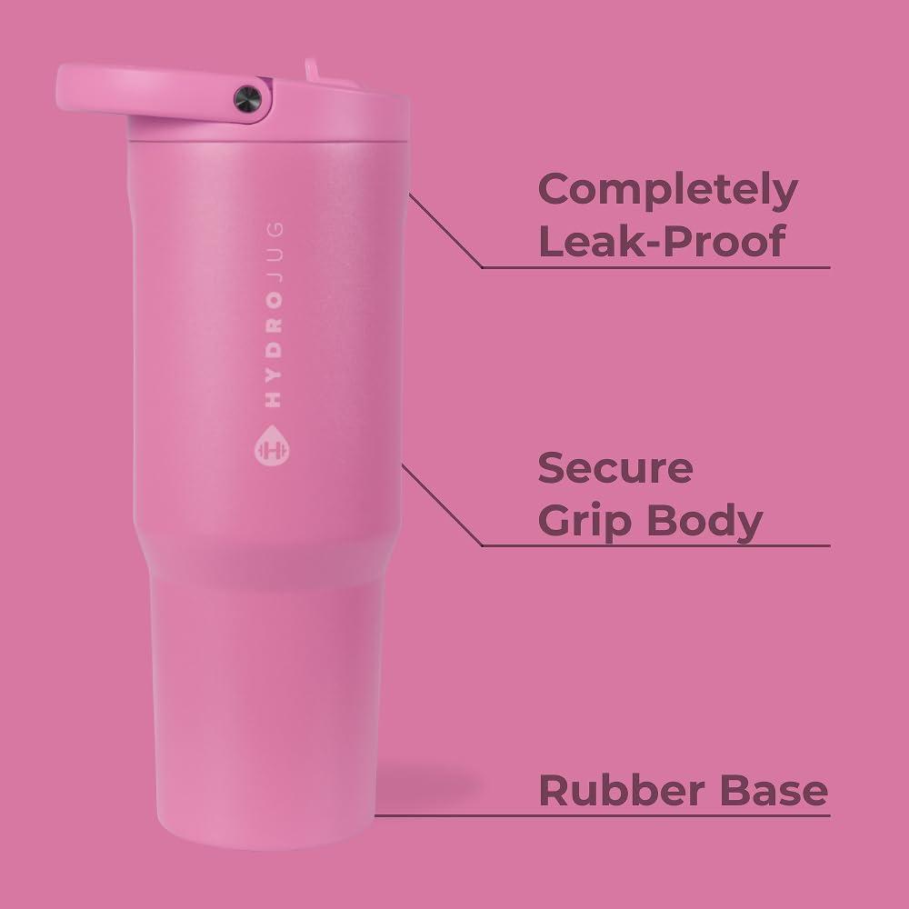 HydroJug Sport – Stainless Steel Tumbler with Straw, Vacuum Insulated, 40oz Leakproof Water Bottle, Ergonomic Design, Reusable, Dishwasher Safe, Rubber Base, Durable for Gym or Outdoors, Alumni Red(Taffy)